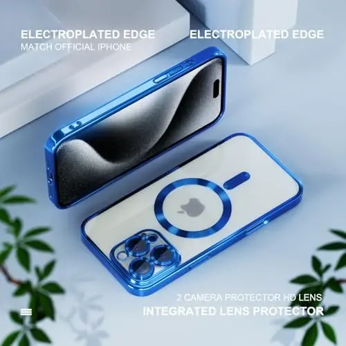 Misea Magnetic for iPhone 16 Pro Case Compatible with MagSafe [Never Yellowing] [Military Grade Drop Protection] Full Camera Lens Protector Plating Soft Clear Phone Case for Women 6.3", Deep Blue