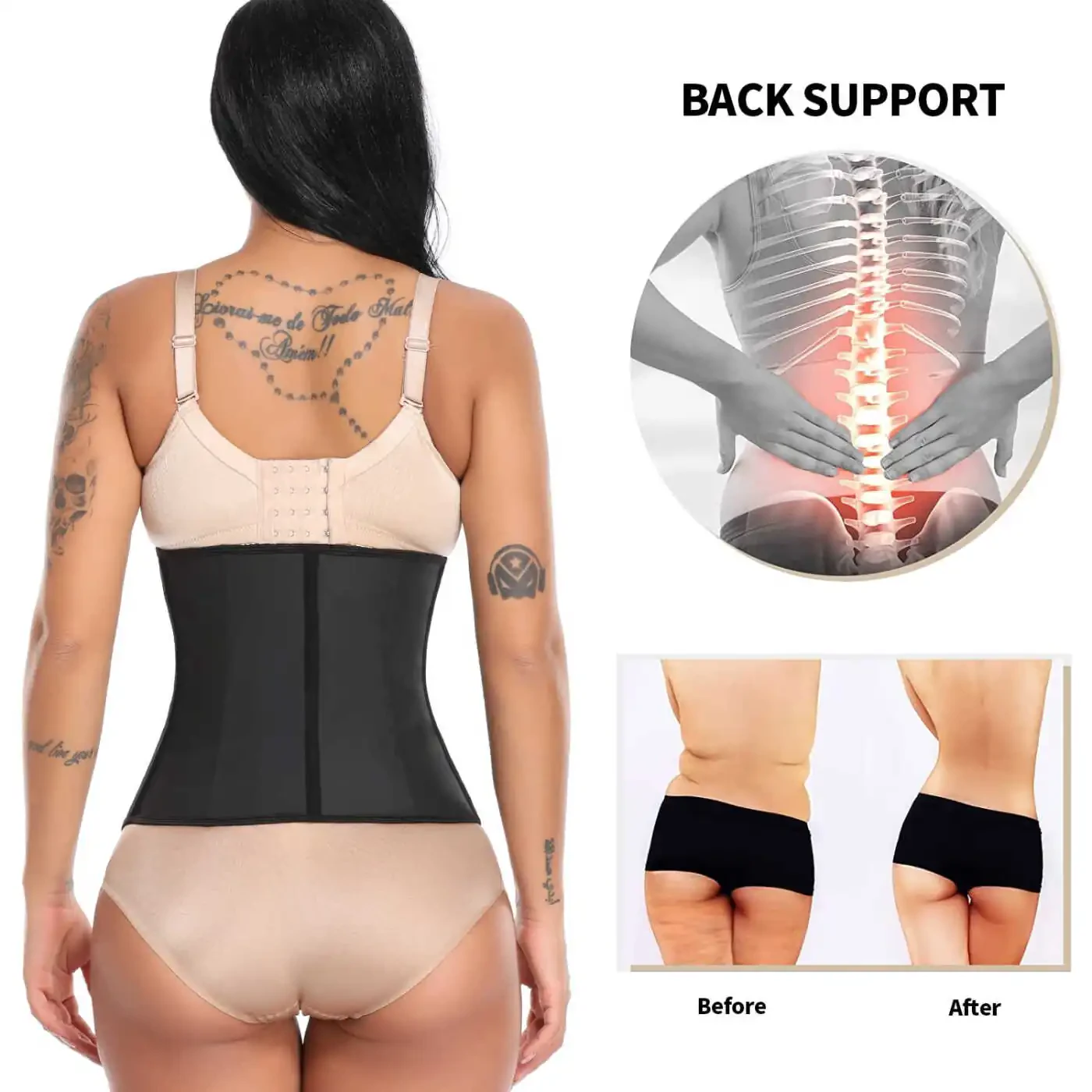 MISS MOLY Latex Waist Cincher Corset will help you shape your body without that suffocating feeling felt in most corsets. Also known as a compression band, waist shaper, or faja, MISS MOLY only manufactures the best. Made of high-quality latex and designed with three hooks for maximum support, MISS MOLY waist trainers are known to be amongst the best in the market. These waist trainers will give you that hourglass figure you've been searching for. Made with latex exterior and cotton interior, these corsets are imported directly from Colombia, the birthplace of the faja. When purchasing, please refer to the size chart and if you are in between sizes, go a size up. These fajas are tight as they should be. Every body has its own unique beauty and MISS MOLY is dedicated to making you feel proud of yours. MISS MOLY - only the best!!! PLEASE USE THE SIZE CHART WE PROVIDED, NOT THE ONE FROM WALMART! To choose the most suitable size for your figure, please read the Description of the Size in the product description. If you are not sure about your size please contact us about your waistline, we will reply to you ASAP. This corset is an underbust, long torso waist trainer made with special additives to reduce the latex smell. This trainer corset latex has adjustable control and durable latex covered boning. The New Laty Rose Hooks Latex Waist Trainer has a fresh, gentle, and protective structure. Perfect for everyday use, it makes you slim and beautiful, slimming fabric makes it seamless, and can be worn under clothes when going to a party, work, or the gym, suitable for any occasion. It allows you to feel comfortable while shaping your body. Thanks to its especially long torso, it fully covers the abdomen area and provides more effective tightening. With its three rows of hooks, you can adjust the tightness as desired. Being made of quality materials offers the possibility of long-term use.