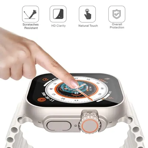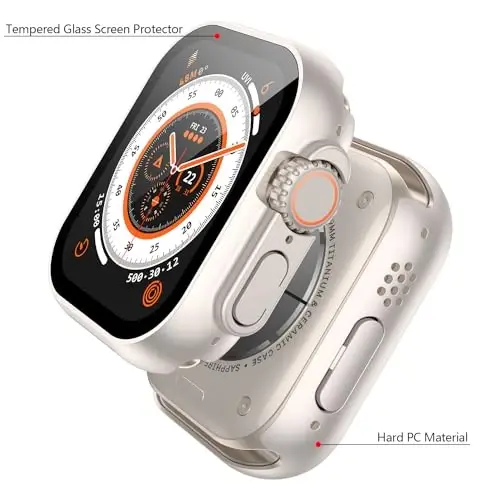 【Compatibility】This Hard PC case for Apple Watch is specially designed for Apple Watch Ultra 3 (2025) / Ultra 2 / Ultra 49mm. Please check that your iWatch model matches this cover before purchasing to prevent buying the wrong one and note this case is not compatible with Milanese Loop band at this time. 【Overall Protection】The case with screen protector with curved edges is designed to fit your Apple Watch perfectly, protecting both the screen and the side of your iWatch. Protect your Apple Watch from bumps, scratches and accidental drops in daily life. 【Unique and Tough】This Screen Protector designed exclusively for Apple WatchUltra 3 / Ultra 2 / Ultra 49mm is made of superior quality hard PC and tempered glass material, which is tough, odourless and will not deform. The starlight case makes your iWatch shine and stand out in different lights. 【Precise Fit】Perfectly fits the whole watch, which protects the edges of your iWatch and does not affect the main screen. Precise hole design and cutting techniques can easily reach all the buttons of your Apple Watch without affecting the watch functions. Firm, safe and beautiful. 【Kindly Tip】What you receive will be 1 starlight and 1 transparent protective cases with screen protector. This Screen Protector is not waterproof, in case of accidental water ingress or when fogging occurs between your Apple Watch screen and the watch cover, please dry it with a soft cloth for normal use.