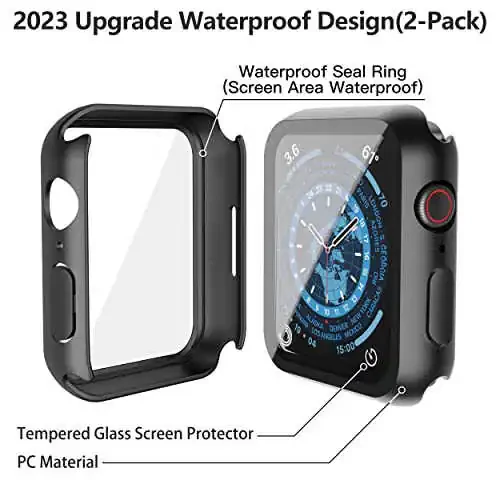 Misxi 2 Pack Waterproof Black Hard Case for Apple Watch Series 9, 8, 7 45mm