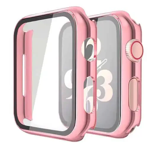 Misxi 2 ta’rifli Qattiq PC Korpus To'plami Temperlangan Shisha Ekran Himoyachisi bilan Apple Watch Series 6 SE Series 5 Series 4 44mm, 1 Pushti + 1 Shaffof