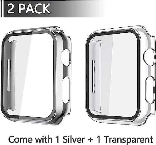 Misxi 2-х Комплект Жесткий PC Чехол с Защитным Стеклом для Apple Watch Series 6 SE Series 5 Series 4 44mm, 1 Серебро + 1 Прозрачный