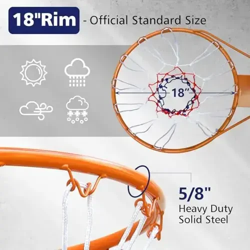 MIUDGIG 18" Basketbol halqasini almashtirish to'plami bilan basketbol tajribangizni keyingi bosqichga olib chiqing! Ushbu og'ir yuk, uzilish xususiyatli halqa va to'r ham ichki, ham tashqi makonlarda foydalanish uchun ajoyib tanlovdir. Universal dizayni tufayli u erga o'rnatilgan yoki devorga o'rnatilgan basketbol savatiga osongina mos keladi. Professional sifatli mustahkam po'latdan yasalgan orqa taxta halqalari uzoq muddatli va bardoshli ishlashni ta'minlaydi. MIUDGIG basketbol halqasi har qanday ob-havoga chidamli maxsus to'r bilan birga keladi, shuning uchun o'yin zavqi hech qachon to'xtamaydi. Bu sizning farzandlaringiz va o'smirlaringizning sport bilan o'sishiga imkon beradi, shu bilan birga kattalar uchun yoqimli basketbol tajribasini taqdim etadi. Xoh bog'ingizda, xoh uyingizda bo'lsin, xohlagan joyingizda hayajonli basketbol o'yinlarini o'tkazishingiz mumkin. MIUDGIG o'zining sifatli va ishonchli mahsulotlari bilan basketbol ixlosmandlarining sevimlisiga aylanishga nomzod. Ushbu to'plam nafaqat basketbol halqasi, balki sport bilan shug'ullanish odatini rag'batlantiradigan va oila bilan yoqimli vaqt o'tkazish imkoniyatini beruvchi investitsiyadir. MIUDGIG bilan basketbol maydonlarining yulduzi bo'ling!