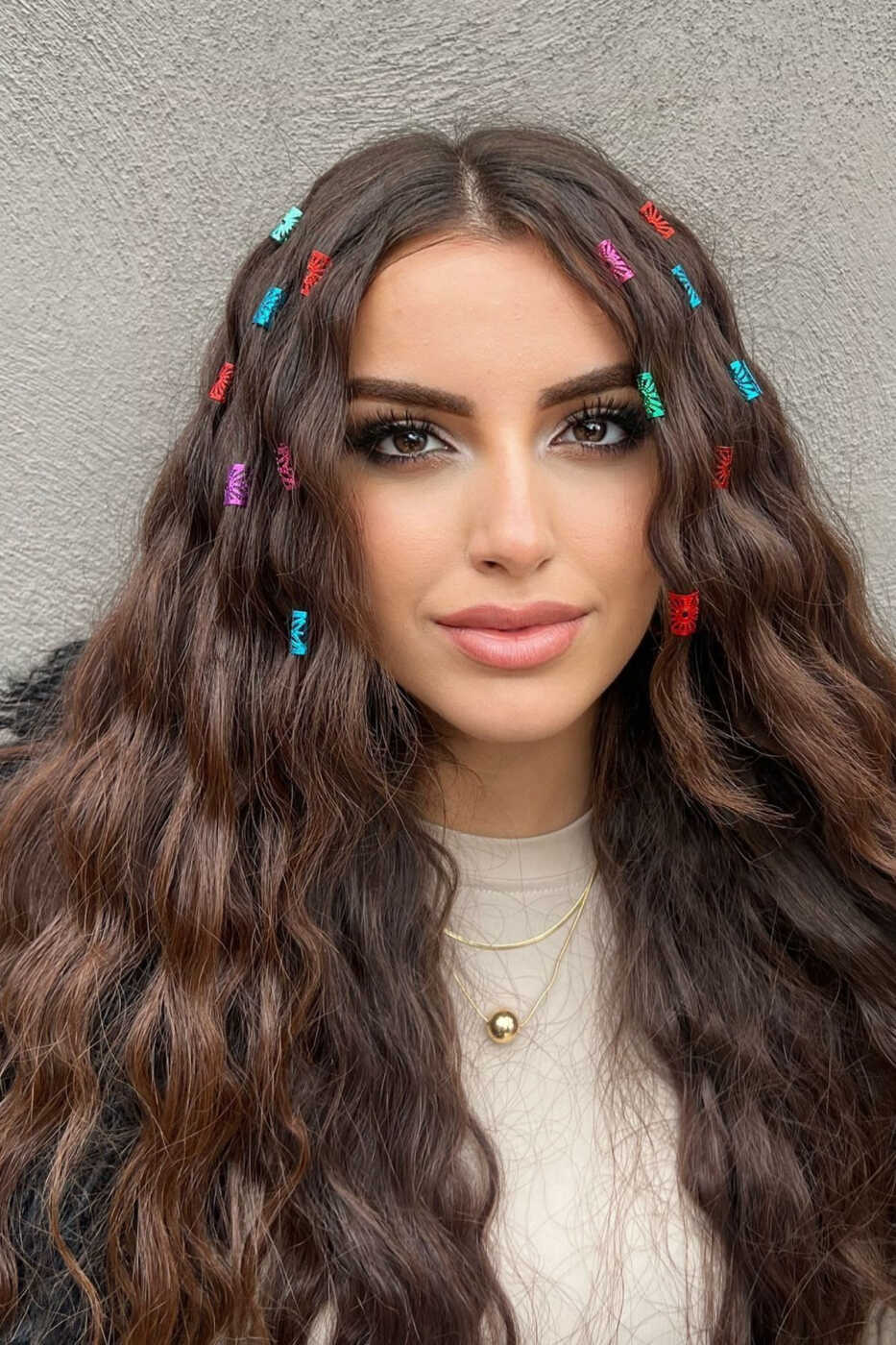 mixed color hair clip, hair accessory, stylish hairstyles, colorful hair clips, hair ornaments, hair clips, trendy hairstyles