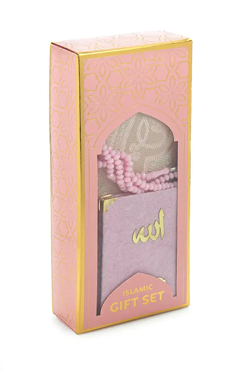 Kadife qoplangan Yasini Sharif kitobi o'qishda qo'lingizni charchamaydigan yengilligi va oson ko'chiriladiganligi bilan e'tiborni tortadi. Pushti tasbeh zikr aytishda xotirjamlashingizga yordam beradi. Pushti namozlik gilamcha esa ibodatlaringizni xotirjam va osoyishta muhitda ado etishingizni ta'minlaydi.