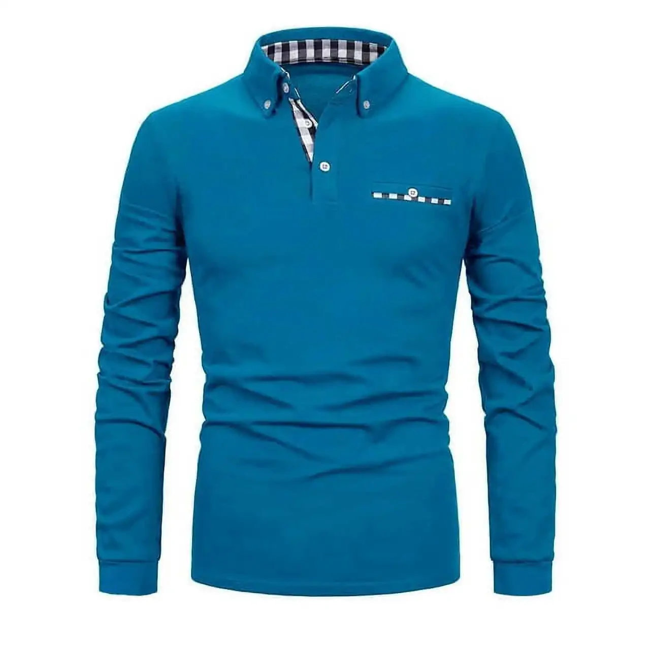 Men's Plaid Collar Polo Shirt | Long Sleeve Slim Fit Cotton Shirt