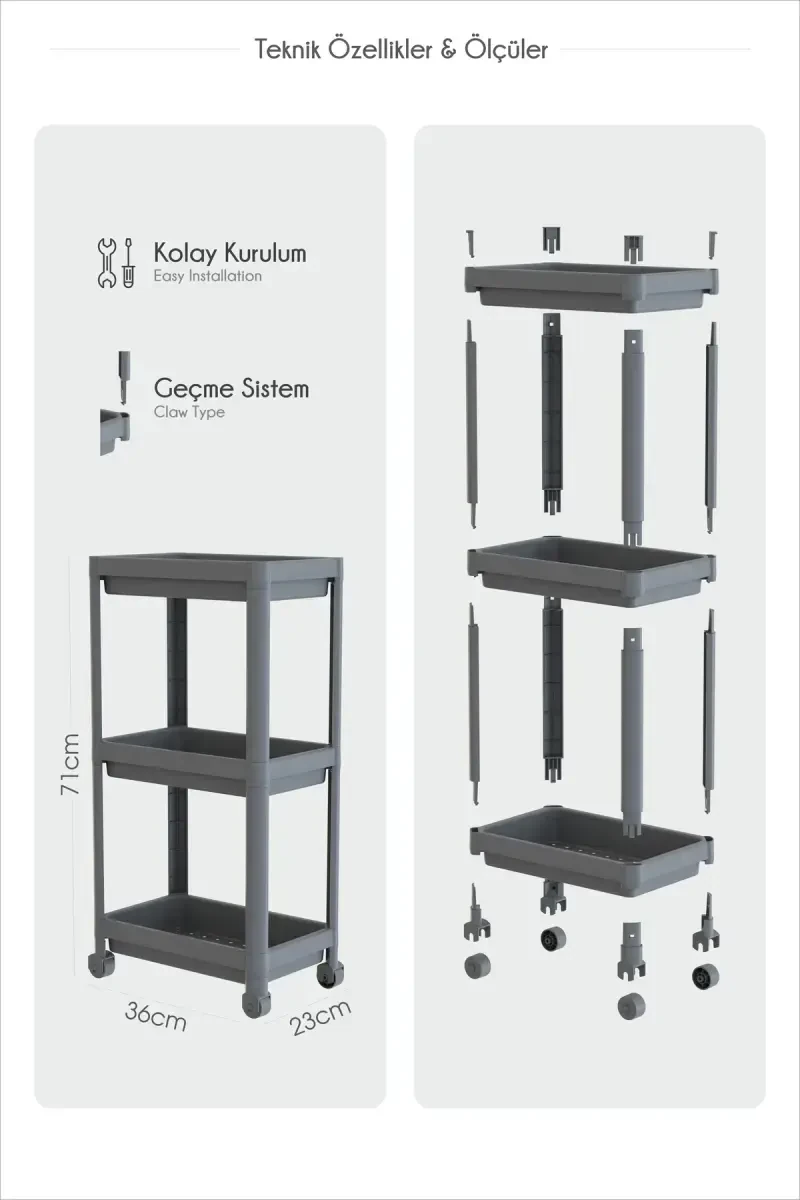 Изделие легко чистится. Вы можете очистить его, протерев влажной тканью. Избегайте использования моющих средств или химических веществ. Все детали, необходимые для сборки изделия, входят в комплект поставки. Вы можете легко выполнить установку, следуя руководству пользователя. Колеса изделия не имеют функции блокировки. Изделие поставляется в разобранном виде.