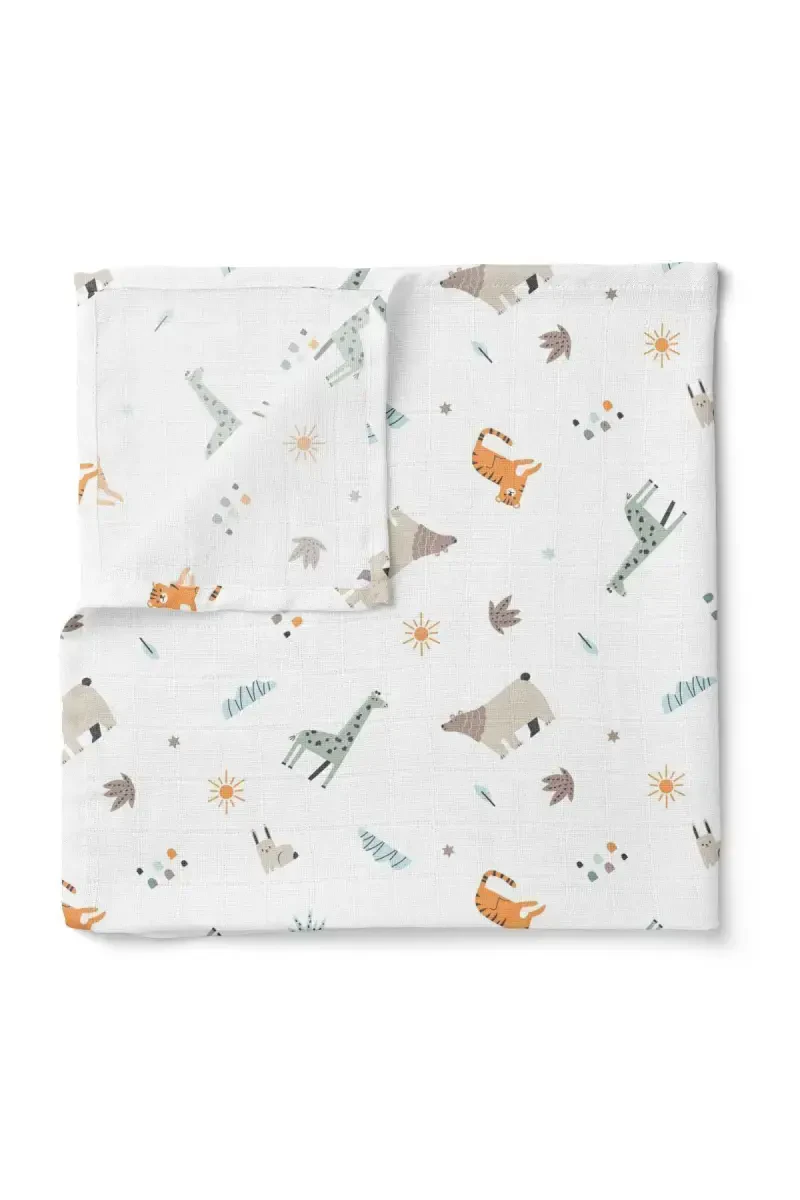 Муслиновая детская пеленка, детская пеленка, муслин, пеленание, пеленальный коврик, накидка для кормления, animal party, хлопок, ребенок, oeko-tex