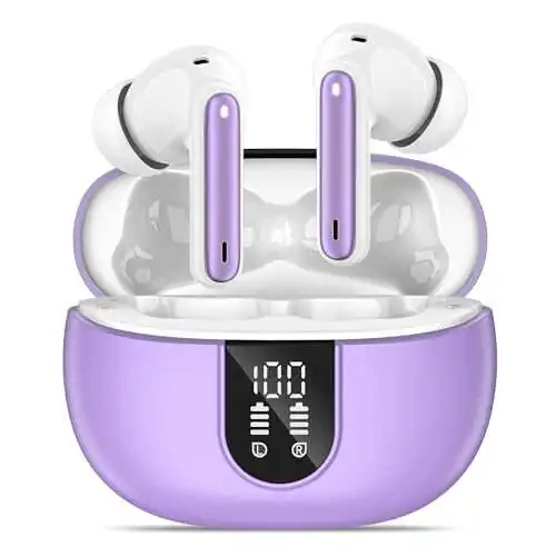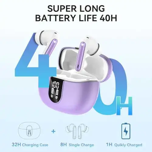 MoBadeety Simsiz Quloqchinlari Bluetooth 5.3 texnologiyasi bilan ajoyib ovoz sifati va uzluksiz ulanishni taqdim etadi. 40 soatgacha o'ynash muddati bilan, hatto uzoq safarlarda ham musiqangiz to'xtab qolishidan xavotirlanishingiz shart emas. Chuqur baslar va stereo ovoz tajribasi bilan musiqangizni har bir tafsilotlariga qadar his qilasiz.