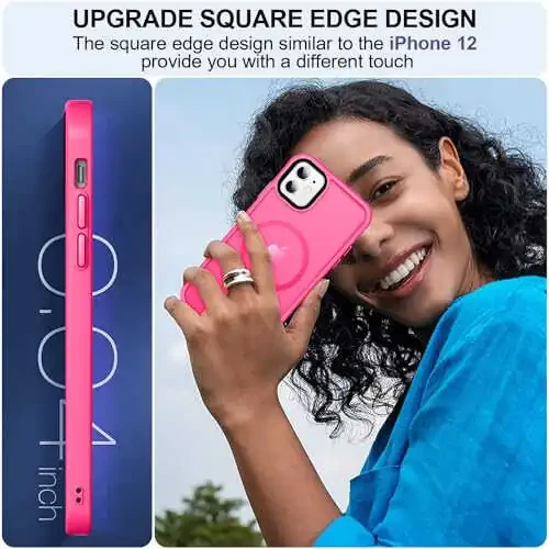 MagSafe bilan mos keladi [Shisha Ekran Himoyachisi + Kamera Linzasi Himoyachisi] Yupqa ingichka zarbaga chidamli qopqoq iPhone 11 6.1 dyuym uchun, Issiq pushti