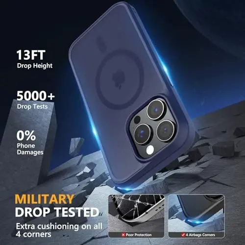 - 13FT Harbiy tushishdan himoya: Qattiq polikarbonat orqa qismi, moslashuvchan silikon bamper va ko'rinmas havo yostiqchalari tufayli telefoningizni 13 fut balandlikdan tushishdan himoya qiladi. Harbiy tushish testi standartidan muvaffaqiyatli o'tdi.