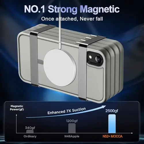 MOCCA Strong Magnetic iPhone XR g'ilofi telefoningiz uchun nafislik va xavfsizlikni birlashtiradi. Magsafe muvofiqligi va harbiy darajadagi tushishdan himoyalanish bilan jihozlangan ushbu ingichka va engil g'ilof iPhone XR 6.1'' qurilmangizga mukammal mos keladi. Titan kulrang rangi telefoningizga nafis ko'rinish beradi, yarim shaffof mat dizayni tufayli g'ilofning ifloslanishi yoki sarg'ayishi oldini oladi. Muzli to'qimasi yaxshiroq ushlab turishni ta'minlaydi, telefoningizning qo'lingizdan sirg'alib ketishiga yo'l qo'ymaydi va hashamatli tuyg'u beradi. Magsafe aksessuarlari bilan bemalol ishlaydi, shuning uchun simsiz zaryadlovchi qurilmalar, magnitli avtomobil ushlagichlari, magnitli batareya paketlari va magnitli hamyonlar kabi aksessuarlardan osongina foydalanishingiz mumkin. Zaryadlash uchun telefoningizni zaryadlovchi qurilmaga qo'yishingiz kifoya, g'ilofni yechib olishingizga hojat yo'q. MOCCA iPhone XR g'ilofi 38 dona N52+ super magnit bilan jihozlangan va magnit tortishish kuchi 2500GF ga etadi. Bu oddiy g'iloflarga qaraganda 7 barobar kuchli magnit aloqani anglatadi. Zaryad olayotganda telefoningizni qanchalik silkitmang, u tushmaydi. SGS va ROHS sertifikatiga ega harbiy himoya g'ilofi bo'lgan MOCCA iPhone XR g'ilofi ko'p qatlamli tampon strukturasi tufayli tashqaridan keladigan zarbalardan a'lo darajada himoya qiladi. 8000 harbiy standart tushish sinovidan muvaffaqiyatli o'tdi, bu telefoningiz xavfsiz ekanligiga ishonch hosil qilishingiz mumkin deganidir. Ko'tarilgan ekran (1,5 mm) va kamera qirralari (2,0 mm) iPhone XR'nizin kamerasini va ekranini stolga qo'yganingizda to'g'ridan-to'g'ri ishqalanishdan himoya qiladi. MOCCA Strong Magnetic g'ilofi bilan iPhone XR'nizni xavfsiz saqlang va ayni paytda nafosatingizdan voz kechmang.