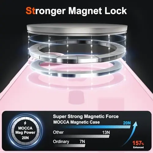 The MOCCA Magnetic iPhone 17 case, with its pink color, adds a stylish look to your phone. It is made of high-quality materials and is long-lasting. While protecting your phone from scratches, bumps, and drops, it offers a seamless experience with your Magsafe accessories. Get the best protection for your iPhone 17 with MOCCA quality and assurance.