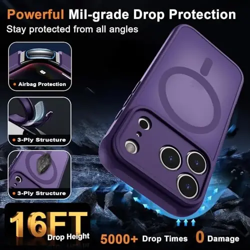 Combine style and security for your iPhone 17 Pro with the MOCCA Magnetic case. This case not only protects your phone but also simplifies your daily use. Thanks to its perfect fit, it forms a seamless whole with your phone and allows you to easily access all its functions. The translucent matte surface in deep purple emphasizes the elegance of your iPhone 17 Pro while offering resistance to fingerprints and smudges.The MOCCA Magnetic case keeps your phone safe from unexpected accidents with its advanced drop protection. Certified with the 16FT military-grade protection standard, this case offers superior resistance to impacts and drops. Its raised edges protect your screen and camera lenses from scratches and bumps. Full camera protection ensures that your lenses are always safe.Its magnetic feature ensures seamless compatibility with your MagSafe accessories. You don't need to remove your case when using wireless charging, which provides a practical user experience in your daily life. The slim and lightweight design preserves the original dimensions of your phone while making it easy to carry in your pocket or bag. The MOCCA Magnetic case is both a stylish accessory and a reliable protection solution for your iPhone 17 Pro.