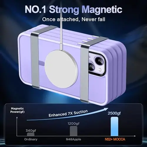 iPhone 13 case, MagSafe, protective, purple, magnetic, screen protector, camera protector, charger, accessory, MOCCA