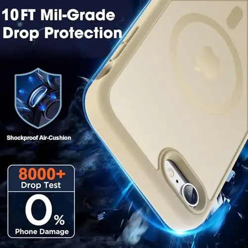 The MOCCA Strong Magnetic iPhone SE 2022/iPhone SE 2020/iPhone 7/iPhone 8 case offers excellent protection and style for your phone. This case is specifically designed to be compatible with iPhone SE 2022, iPhone SE 2020, iPhone 7, and iPhone 8 (4.7-inch) models, providing a snug fit and unique protection for your device. Thanks to its translucent matte design, the back surface of your phone offers a pleasant touch while preventing oil stains and other unsightly marks. This feature ensures your phone always looks clean and stylish. Additionally, the matte surface provides a better grip, preventing your phone from slipping out of your hand and giving your device a more prestigious and luxurious appearance.One of the most notable features of this case is its perfect compatibility with Magsafe accessories. Thanks to the integrated strong magnet, you can enjoy wireless charging and get rid of charging cables. You can simply charge by attaching the case and use it seamlessly with magnetic car mounts, magnetic battery packs, and wallets. It offers a strong attraction and convenience experience for your daily technology needs. The MOCCA phone case is made with 38 N52S+ super magnets, and the magnetic attraction force reaches 2500GF. This is 7 times stronger magnetic holding power than ordinary cases. This way, you can charge safely without being affected by vibrations during charging.Equipped with military-grade drop protection, this case has SGS and ROHS certifications. Thanks to its multi-layer cushioning structure, it effectively absorbs impacts from external factors and provides more reliable protection. It has successfully passed 8000 military standard drop tests and guarantees that your phone will work smoothly even under such harsh conditions. In addition, the raised screen (1.5mm) and camera edges (1.5mm) protect your phone's camera and screen from direct friction when placed on a table or other surfaces. In this way, an extra layer of security is provided against scratches and damage. The MOCCA magnetic phone case is specially designed for your iPhone and is the best option for your phone case selection. MOCCA offers a lifetime replacement guarantee for your iPhone 7/8/SE case, completely eliminating all the worries and doubts in your mind. This case allows you to keep your phone safe while reflecting your style. The light gold color adds an elegant and sophisticated touch to your device.