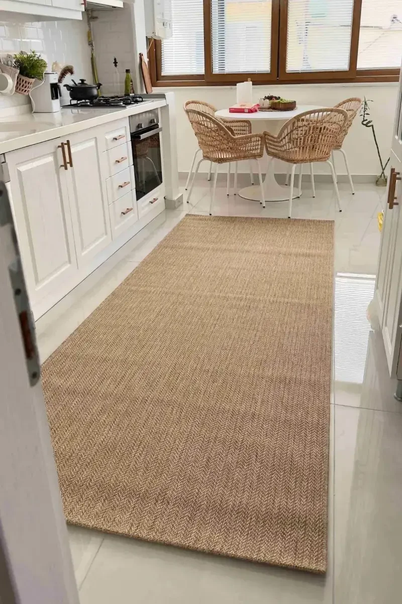 Mocha 670 Bej Gilam, uyingizning har bir burchagiga iliqlik va o'ziga xoslik bag'ishlaydigan, tabiiy ko'rinishli pol qoplamasi hisoblanadi. Jut to'qishga o'xshash to'qima tuzilishi bilan zamonaviy va rustik uslublarga mos keladigan ushbu gilam, mehmonxona, oshxona, yo'lak va yotqizish kabi joylarda juda mos keladi.