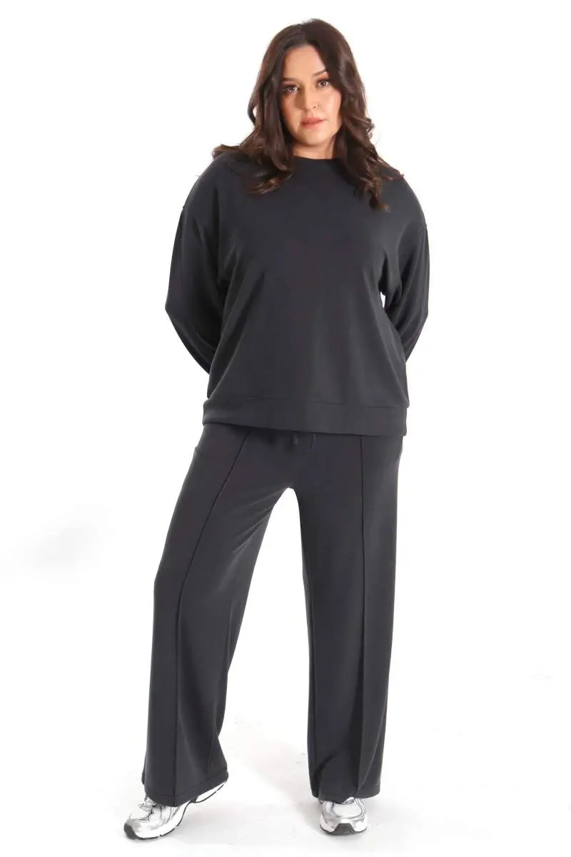 Modal Kumaşlı Yumuşak Dokulu Alt Üst Siyah TakımÜrün ÖzellikleriCep ve bağcık detaylı şık bir duruşGözalıcı tasarımı ile havalı görünümYumuşak dokusu ile işlevsel kullanımKalça hizası sweat Pantolon cep detaylıPantolon geniş paçaÜrün AçıklamasıŞık tasarımıyla günlük hayatınızda size konfor sağlayan harika büyük beden Siyah eşofman takımı.İster evde dinlenirken ister spor yaparken rahatlıkla kullanabileceğiniz rahat kalıp eşofman takımı.Pamuklu kumaşı ile daha özgür, aktif ve ferah hissedin.Renk: SiyaModazonealzeme: %100 PamukManken Ölçüleri: Omuz: 47 cm. - Göğüs: 97 cm. - Basen: 105cm - Bel: 80 cm. - Boy: 1,79 cm. Sweat boy 80 cm. 'dir.Alt Eşofman boy 95 cm. 'dirModel Bedeni: 44