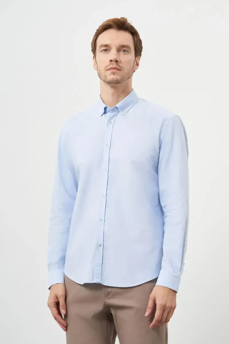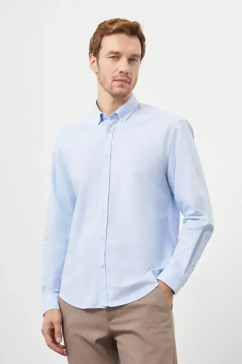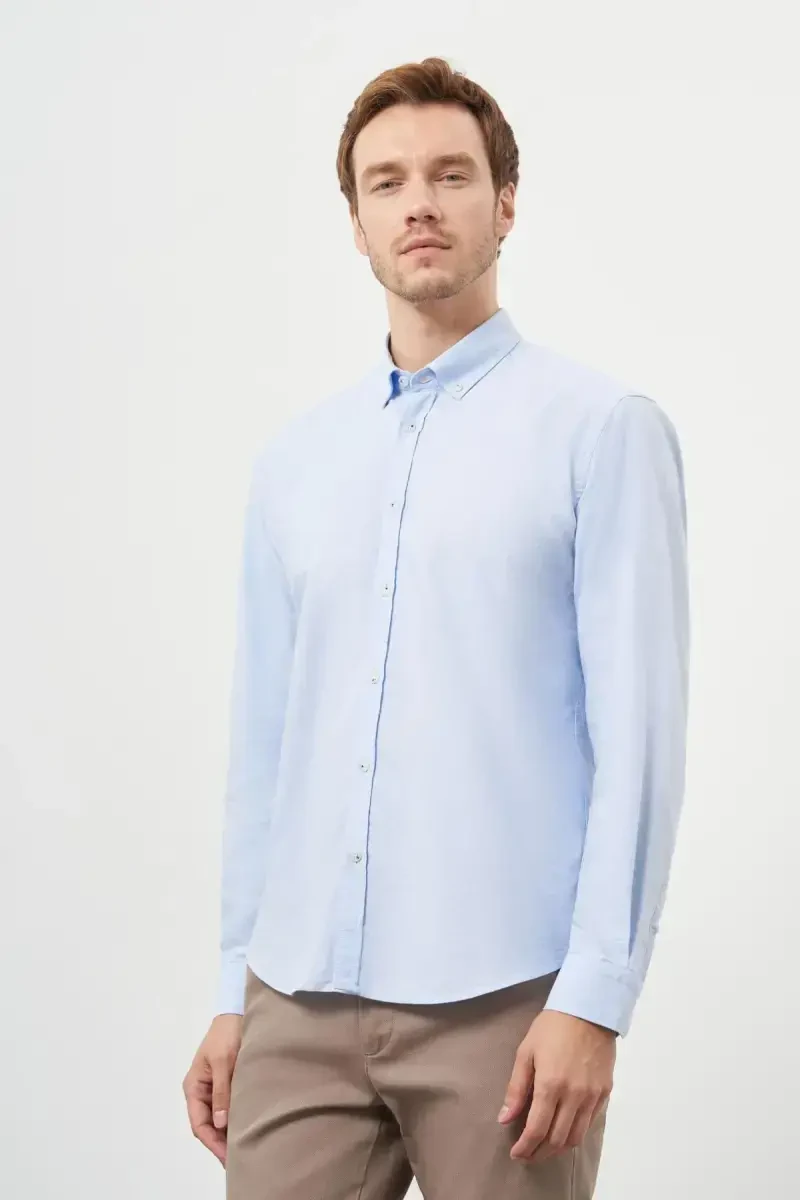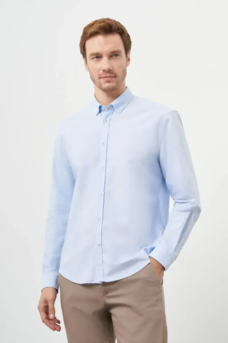 Erkak ko'ylak, paxta ko'ylak, ko'k ko'ylak, trend ko'ylak, tugmali yoqa, dynamic fit, kundalik ko'ylak, qulay ko'ylak, zamonaviy ko'ylak, erkaklar kiyimi