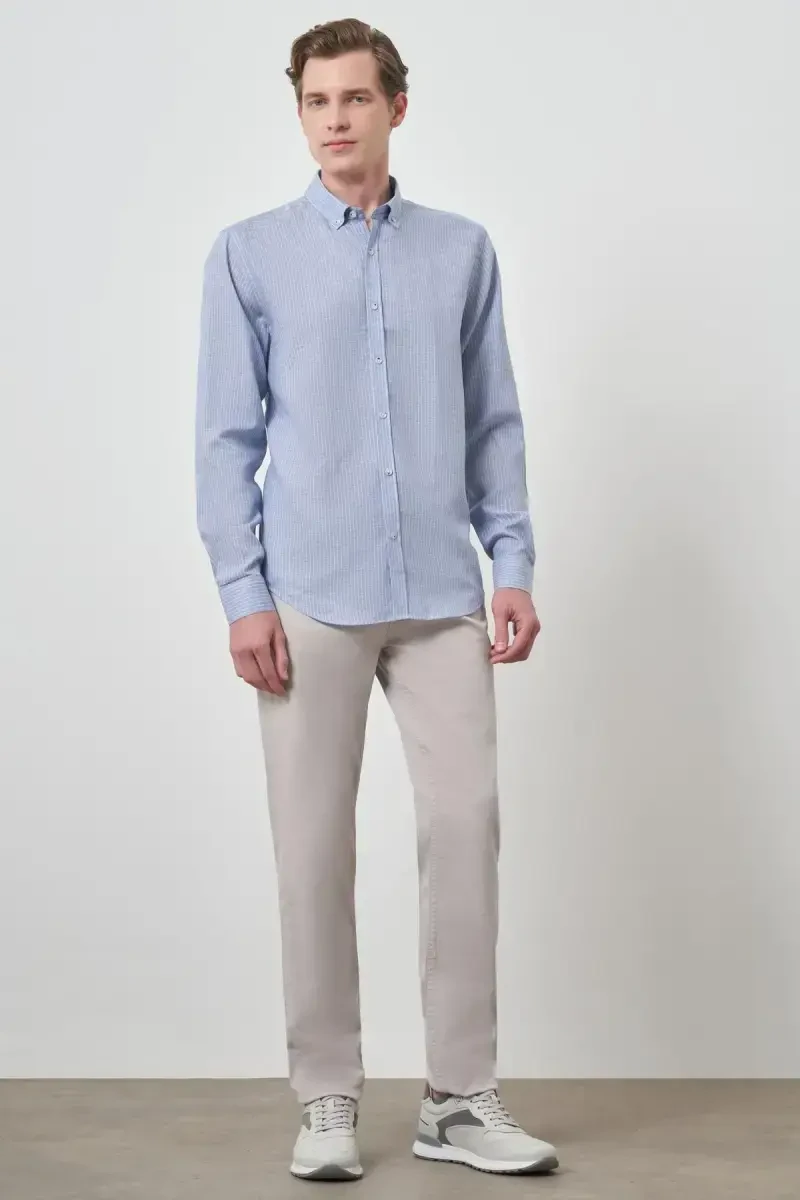 Erkak ko'ylak, zig'ir ko'ylak, ko'k ko'ylak, dynamic fit, tor bichim, tugmali yoqa, yozgi ko'ylak, ModaZon, erkaklar kiyimi, zig'ir mato