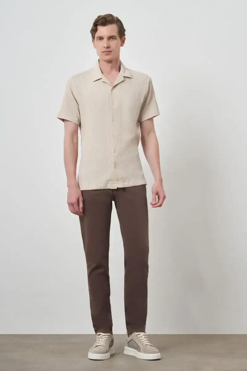 Modazone Erkak Bej Apash Yoqa Qisqa Yengli Ko'ylak, zamonaviy erkakning uslubga ega va qulay kiyim tushunchasini aks ettiruvchi maxsus dizayndir. Apash yoqa detali, ko'ylakka boshqacha va o'ziga xos ko'rinish beradi, qisqa yengli dizayni esa issiq havoda salqin va qulay foydalanishni ta'minlaydi. Bej rangining zamonaviy chiroyi, turli rang va uslubdagi kiyimlar bilan oson kombinatsiyalash imkoniyatini beradi. Paxta mato tuzilishi tufayli kun bo'yi nafas oladigan va qulay foydalanish tajribasini ta'minlaydi. Kundalik jinsi bilan kombinatsiyalab, oddiy ko'rinishga ega bo'ling, yoki hashamatli shim bilan maxsus ziyofatga boring, bu ko'ylak har qanday muhitda tarzingizni namoyon qilishga yordam beradi. Modazone sifati bilan ishlab chiqarilgan ushbu ko'ylak, uzoq umr ko'radigan va bardoshli tuzilishi bilan garderobingizning ajralmas qismiga aylanadi. O'ziga e'tibor beradigan va uslubga ega erkaklar uchun ajoyib tanlovdir. Apash yoqa detali, ko'ylakka zamonaviy teginish qo'shadi, bej rangi ham har doim trendda bo'lgan va oson kombinatsiyalanadigan variantdir. Ko'ylakning kesimi, tanaga mos keladigan, ammo harakat erkinligini cheklamaydigan tuzilishga ega, bu esa kun bo'yi o'zingizni qulay his qilishingizga imkon beradi. Yuqori sifatli materiallardan ishlab chiqarilganligi, ko'ylakning uzoq vaqt davomida birinchi kundagi ko'rinishini saqlashga yordam beradi. Modazone Erkak Bej Apash Yoqa Qisqa Yengli Ko'ylak bilan chiroy va qulaylikni birga his eting. Bu ko'ylak, shunchaki kiyim emas, balki tarzingiz va shaxsiyatingizni aks ettiruvchi ifodadir. Har bir detalida e'tibor va sifat mavjud bo'lgan ushbu ko'ylak, garderobingizning eng sevimli qismlaridan biri bo'lishga da'vogar. Kundalik foydalanishda bo'lgani kabi, maxsus kunlarda ham bemalol tanlashingiz mumkin bo'lgan bu ko'ylak, uslubingizni har doim bir qadam oldinga olib chiqadi. Modazone kafolati bilan taqdim etilgan ushbu mahsulot, ham zamonaviy dizayni, ham yuqori sifati bilan kutganlaringizni qondiradi va sizni har doim chiroyli ko'rsatadi. Garderobingizda albatta bo'lishi kerak bo'lgan ushbu ko'ylak bilan tarzingizni to'ldiring va har qanday muhitda e'tiborni o'zingizga torting.