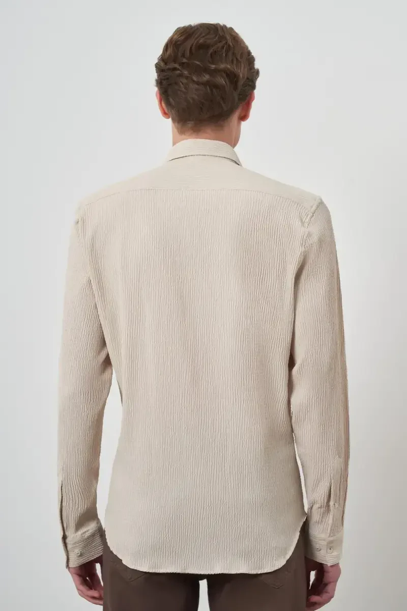 Erkak Bej Gofre Ko'ylak | Trend Naqshli, Dynamic Fit, Italyan Yoqa - Modazone
