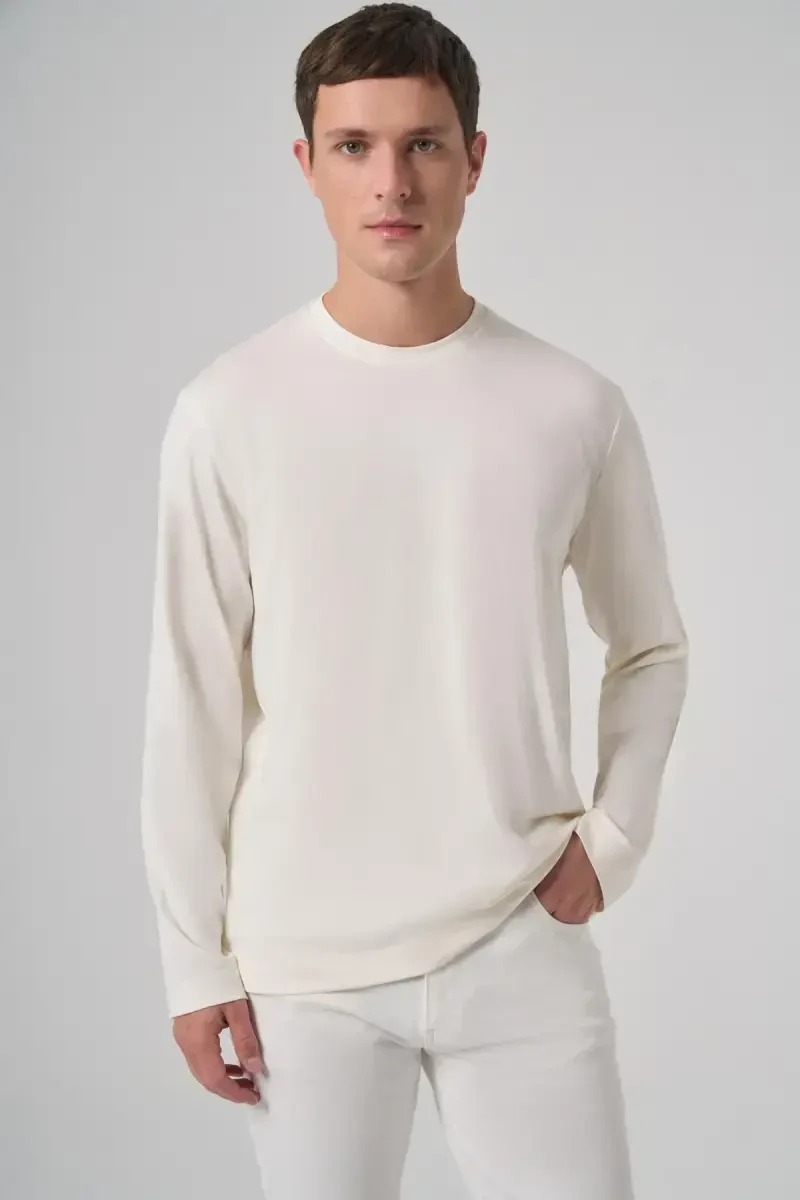 Erkak svitshot, velosiped yoqali, rayon svitshot, ekru svitshot, trend svitshot, Modazone, erkaklar kiyimi, qulay svitshot, zamonaviy svitshot, kundalik kiyim
