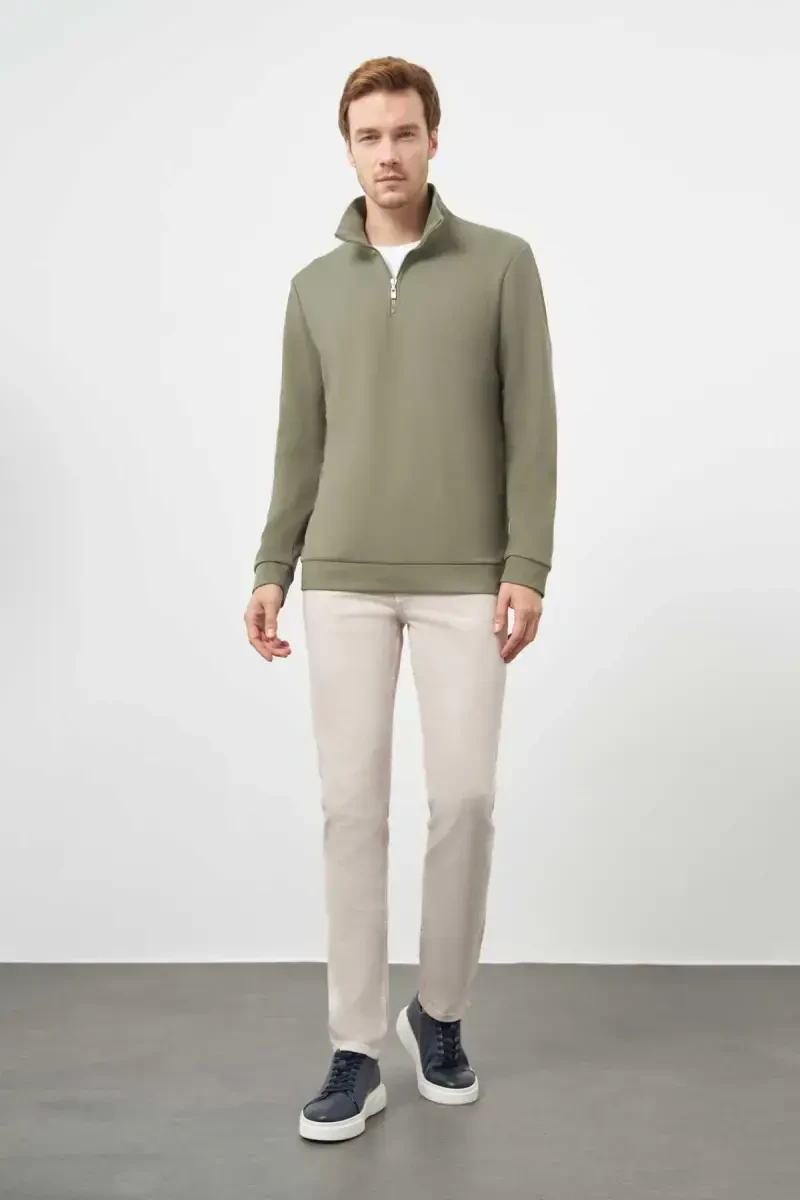 Modazone Erkak Haki Fermuarlı Sweatshirt | Bato Yoqa Şık Tasarım