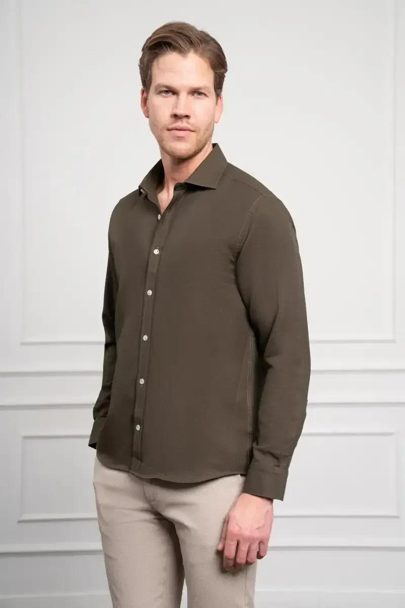 Haki İtalyan Yaka Slim Fit Erkek Gömlek | Modazone Trend Gömlek