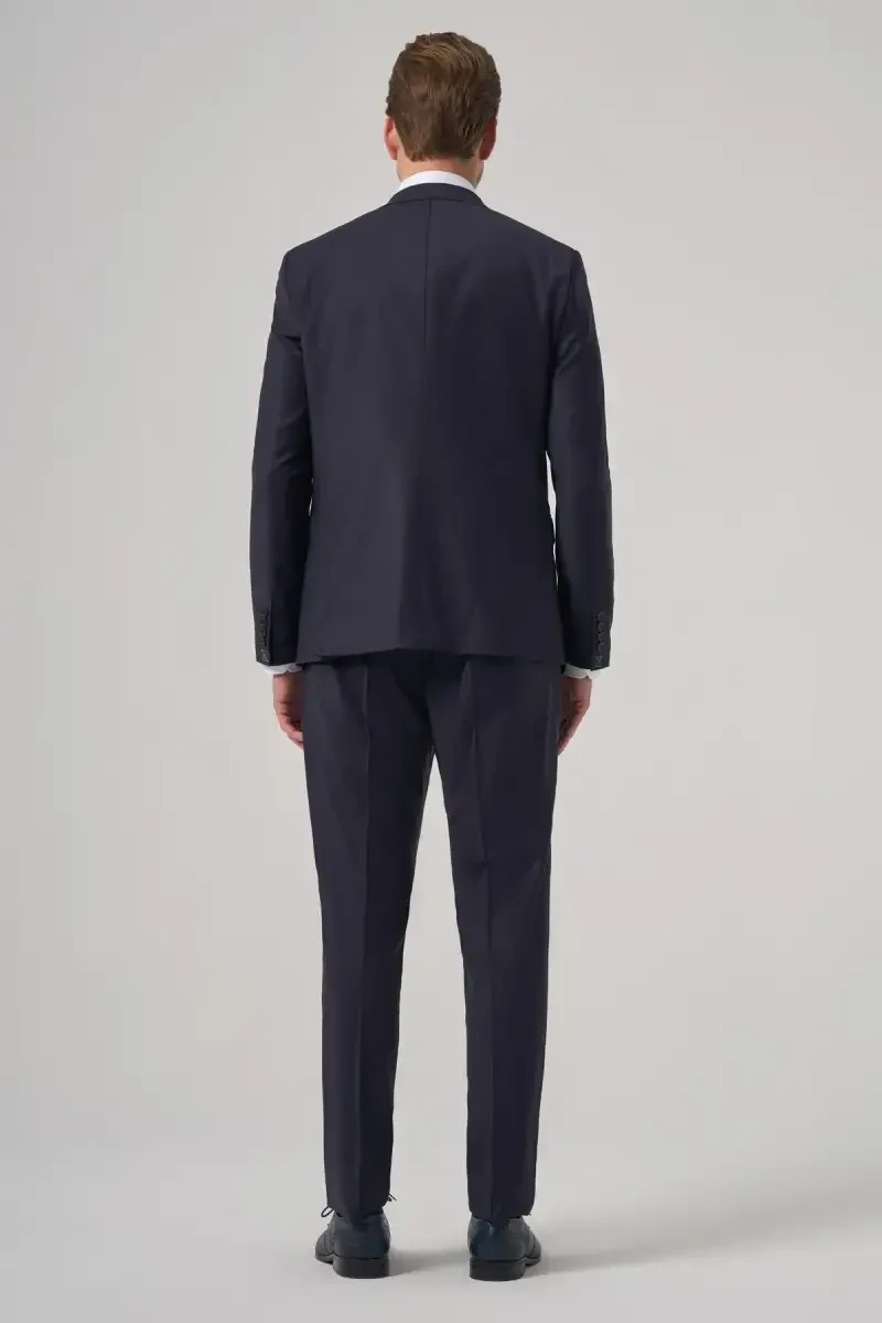 Lacivert Yünlü Slim Fit Erkak Takım Elbise | ModaZon
