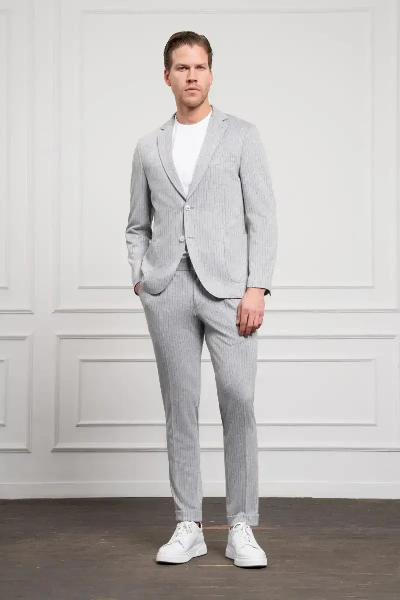 Erkaklar kostyumi, slim fit kostyum, kulrang kostyum, mono yoqa, trend kostyum, ModaZOne, zamonaviy erkaklar kiyimi, chiroyli kostyum, taklif kostyumi, ish hayoti kiyimi