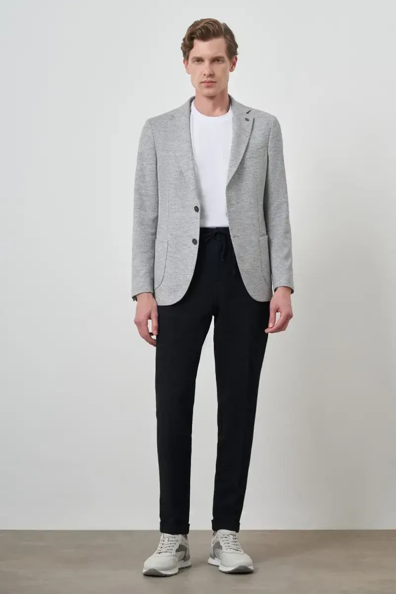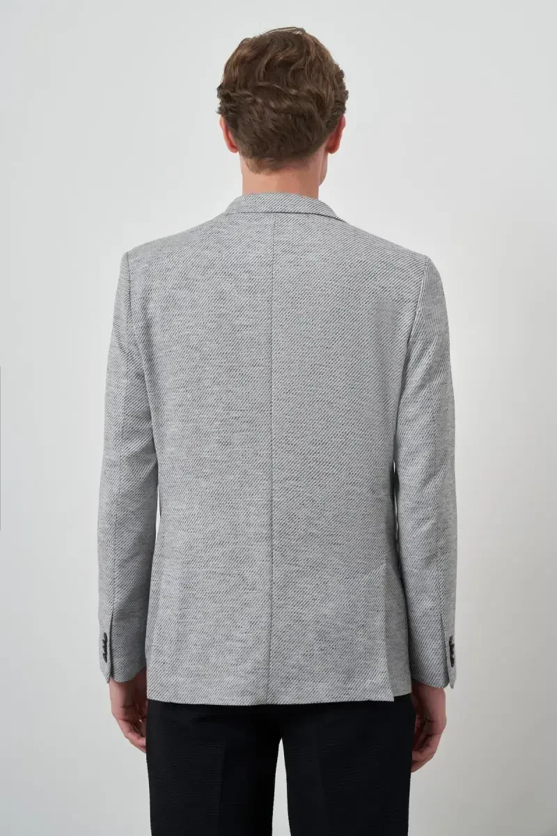 Modazone Erkak Kulrang Zig'ir To'quv Naqshli Slim Fit Mono Yoqali Pidjak