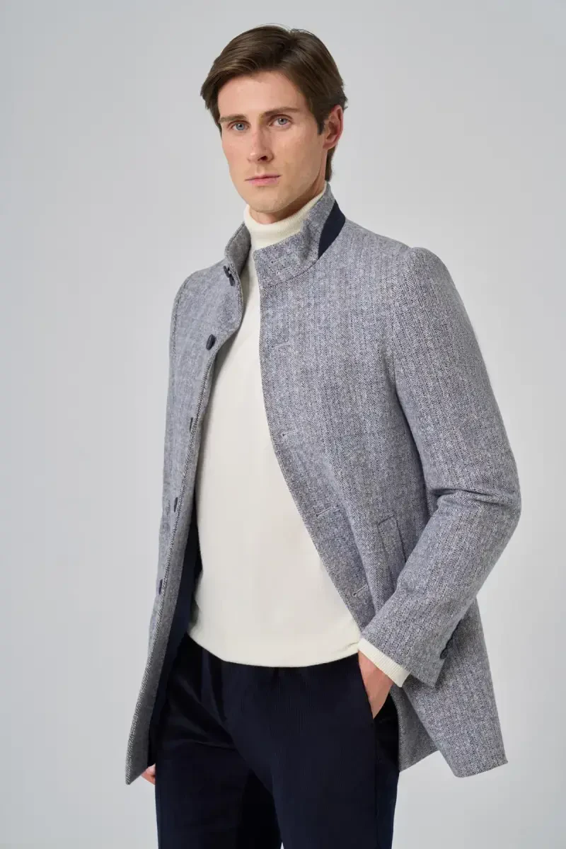 Erkak to‘q ko‘k baliq suyagi naqshli hakim yoqali пальто | Dynamic Fit