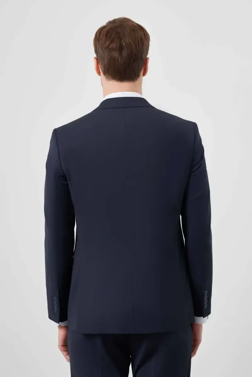 Lacivert Yünlü Slim Fit Erkak Takım Elbise | ModaZon Platinium