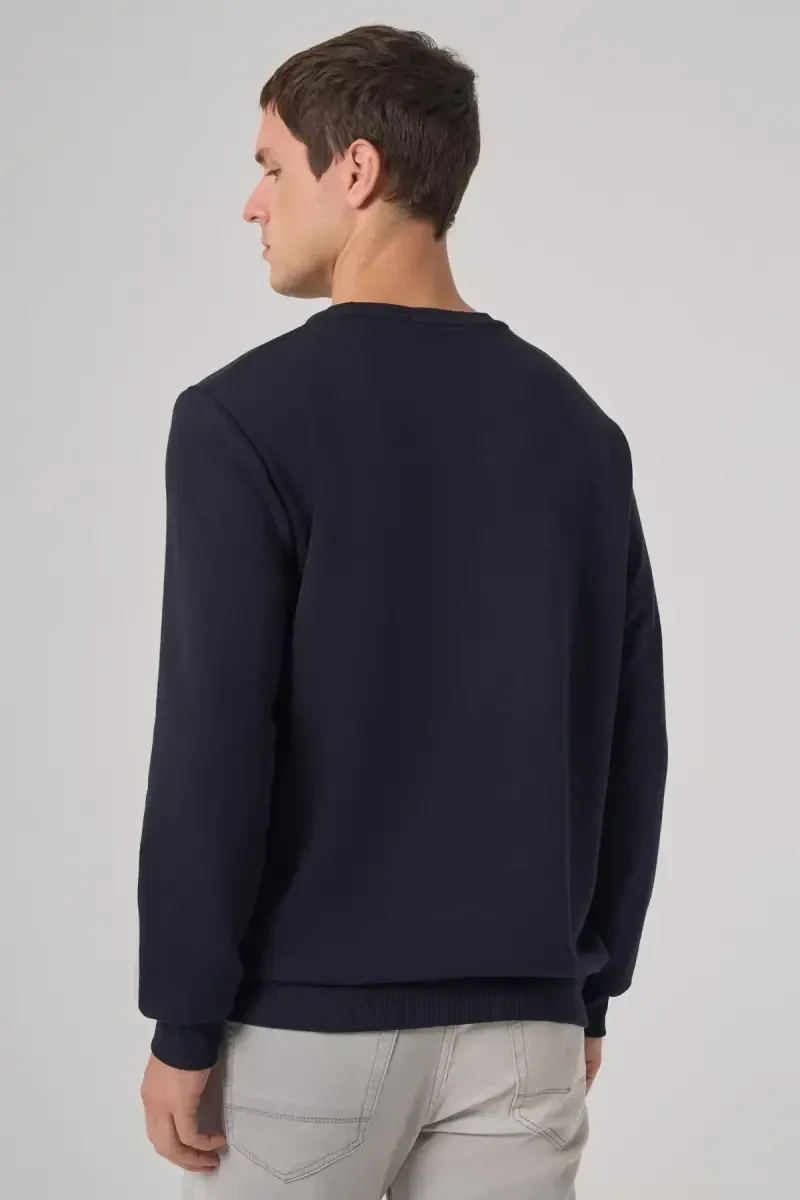 Erkak svitshot, to'q ko'k svitshot, oddiy svitshot, velosiped yoqali, paxta svitshot, qulay bichim, kundalik kiyim, ModaZon, erkaklar kiyimi, qulay svitshot