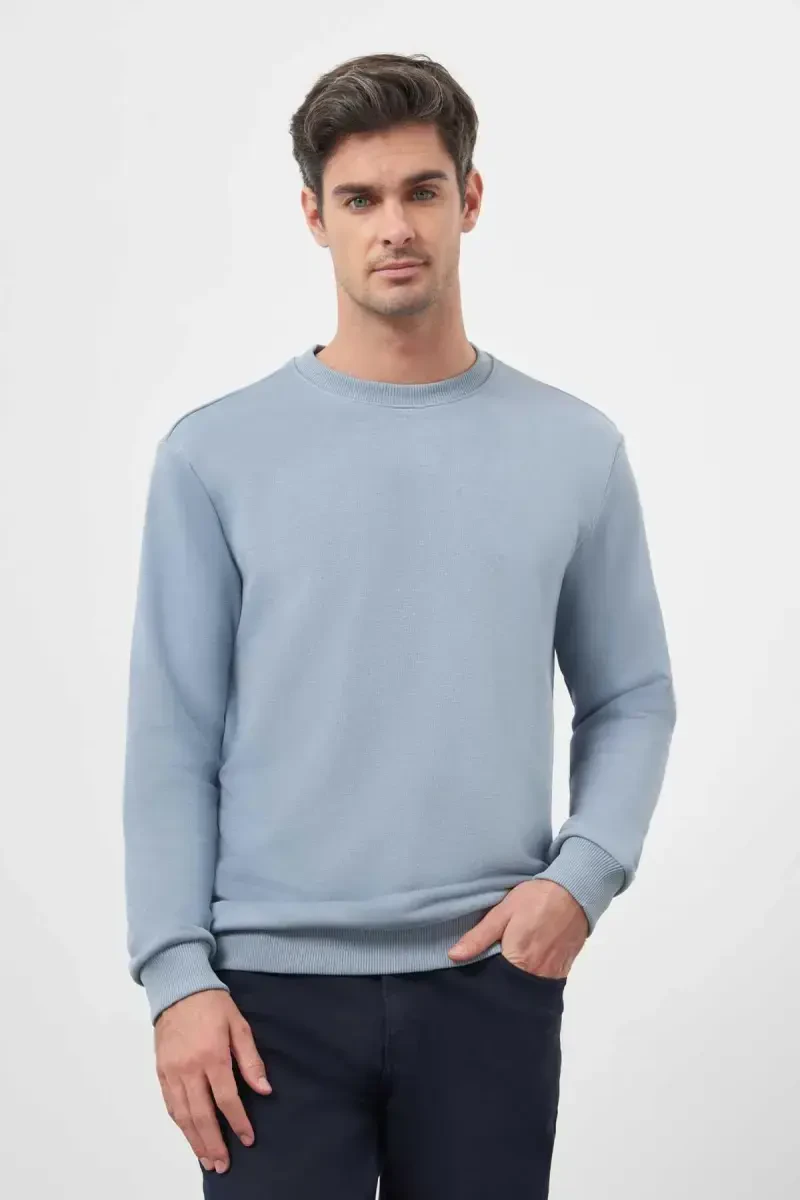 Erkak svitshot, ko'k svitshot, velosiped yoqali, asosiy svitshot, qulay svitshot, kundalik kiyim, sport svitshot, zamonaviy svitshot, uzun yengli, ModaZon