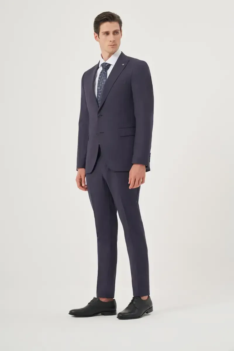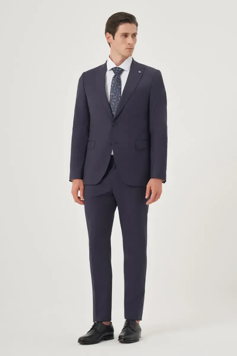 Lacivert Yünlü Erkak Takim Elbise | Slim Fit, Trend Chizgili | Modazone