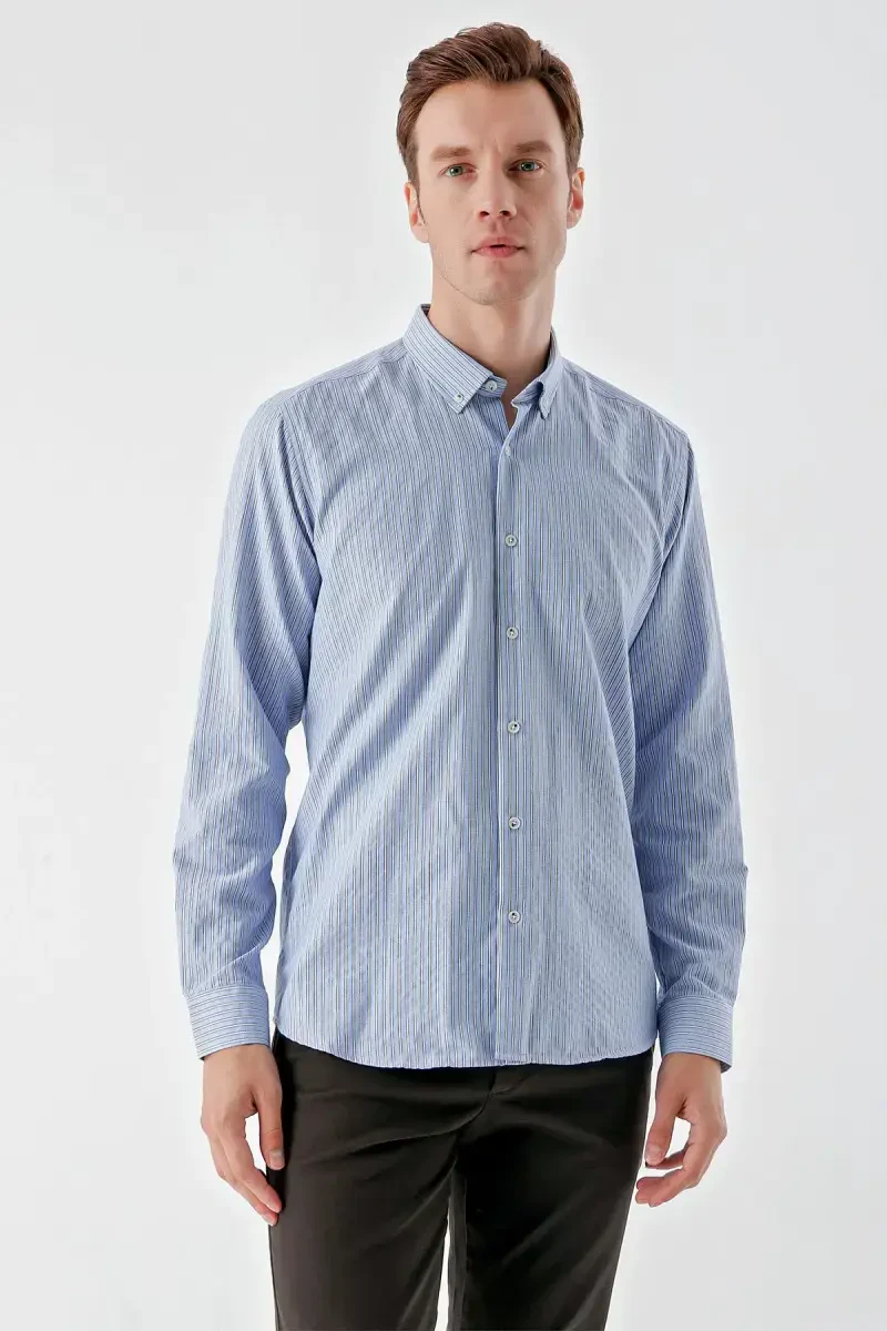 Erkak Moviy Chiziqli Ko'ylak | Trend Tugmali Yoqa Regular Fit
