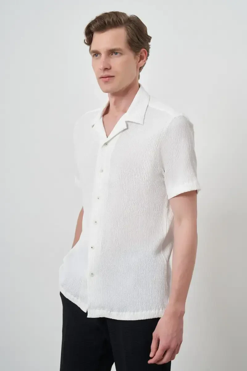 Erkak Oq Apaş Yoqali Ko'ylak | Qisqa Yengli Chiroyli Ko'ylak