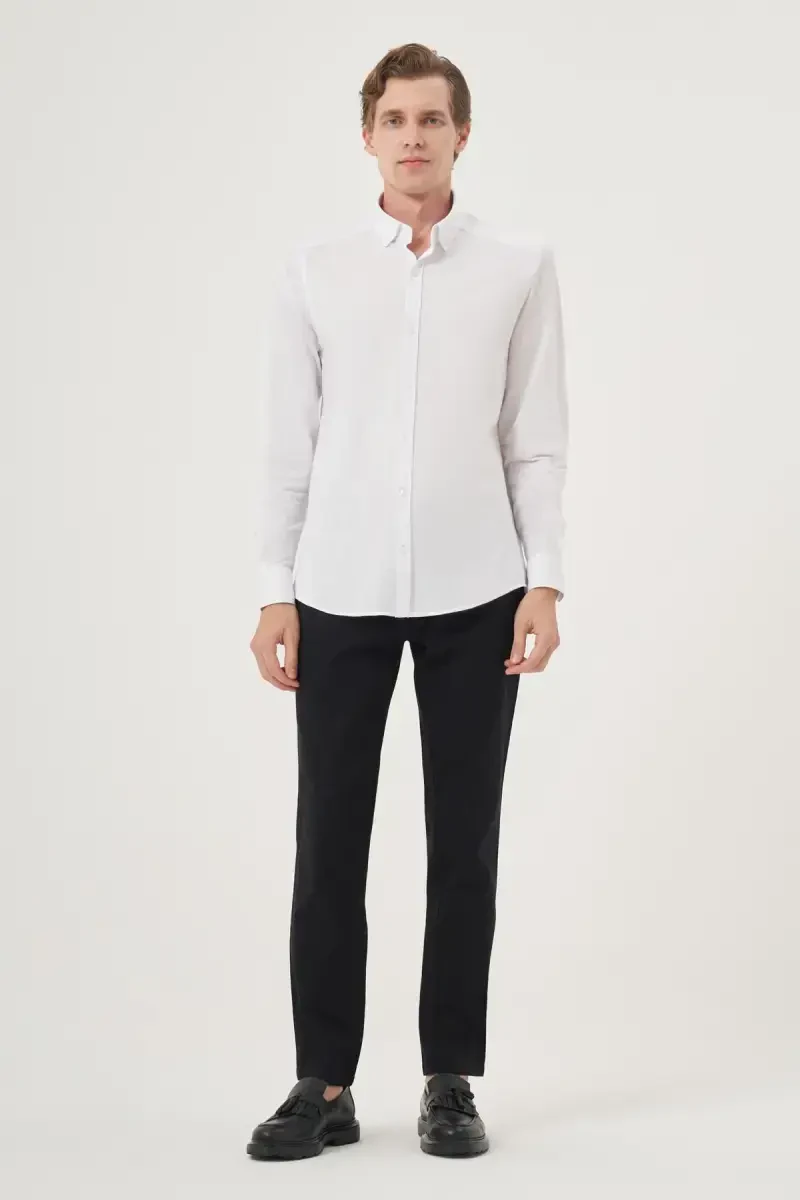 Naqshli Slim Fit Paxtali Uzun Qisma Erkaklar Ko'ylagi