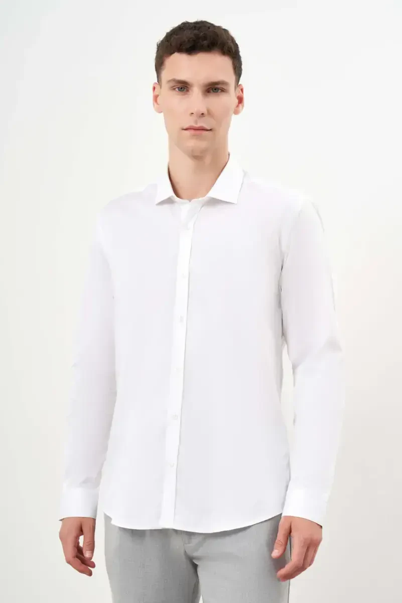 Erkak Oq Bosma Slim Fit Italyan Yoqali Paxta Ko'ylak
