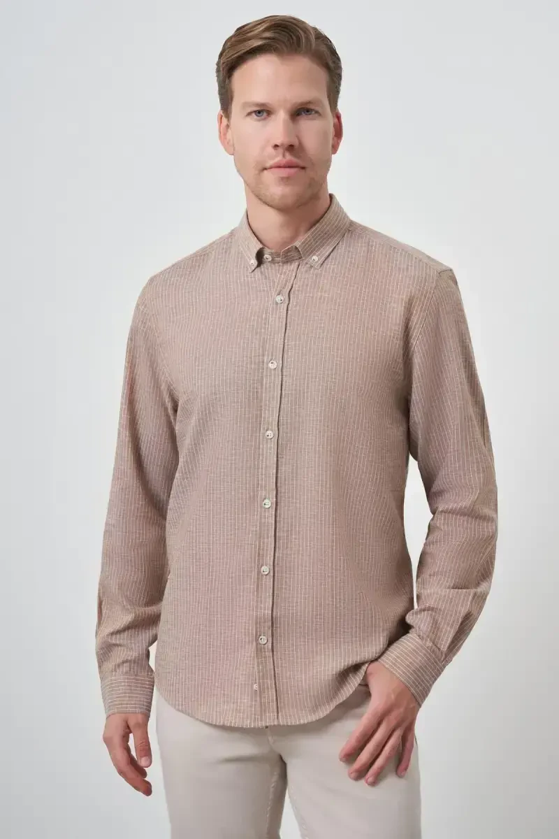 ModaZon Erkaklar KAHVA Zig'ir Dynamic Fit Tugmali Yoqali Ko'ylak bilan issiq yoz kunlarida ham qulaylikdan, ham nafislikdan rohatlaning. Ushbu maxsus dizayndagi ko'ylak, zig'ir matosining nafas oladigan tuzilishi tufayli kun bo'yi salqin va tetik his etishingizni ta'minlaydi. Dynamic fit bichimi, tanangizni o'rab turadigan, ammo harakat erkinligingizni cheklamaydigan tuzilishi bilan zamonaviy ko'rinishni taqdim etadi. Ko'ylakning qahva rangi, tabiiy va iliq muhit yaratadi, tugmali yoqa detali esa ham klassik, ham sport uslublariga oson moslasha olishingizni ta'minlaydi. Xohlasangiz, chiroyli shim bilan maxsus ziyofatga boring, xohlasangiz, kundalik kombinatsiya bilan do'stlaringiz bilan uchrashing, bu ko'ylak har qanday muhitda o'z uslubingizni aks ettirishga yordam beradi. Zig'irning tabiiy burishlari ko'ylakka o'ziga xos xarakter beradi va dazmollash zarurligini yo'q qiladi, bu esa band hayot tarziga ega erkaklar uchun katta afzallikdir. ModaZon sifati bilan ishlab chiqarilgan ushbu ko'ylak, uzoq muddatli foydalanishni taqdim etadi va garderobingizning ajralmas qismlaridan biri bo'lishga da'vogardir. Qahva ohangining iliqligi turli ranglar bilan oson kombinatsiyalanishi mumkin va har faslda foydalanish uchun mos keladi. Ko'ylakni bej yoki oq rangdagi shimlar bilan kombinatsiyalab, yoz oylarining farahligini qo'lga kiritishingiz mumkin, kuz oylarida esa to'qroq ranglar bilan to'ldirib, chiroyli ko'rinishga ega bo'lishingiz mumkin. ModaZon Erkaklar KAHVA Zig'ir Dynamic Fit Tugmali Yoqali Ko'ylak, uslubga ega erkaklarning tanlovi bo'lishga tayyor.