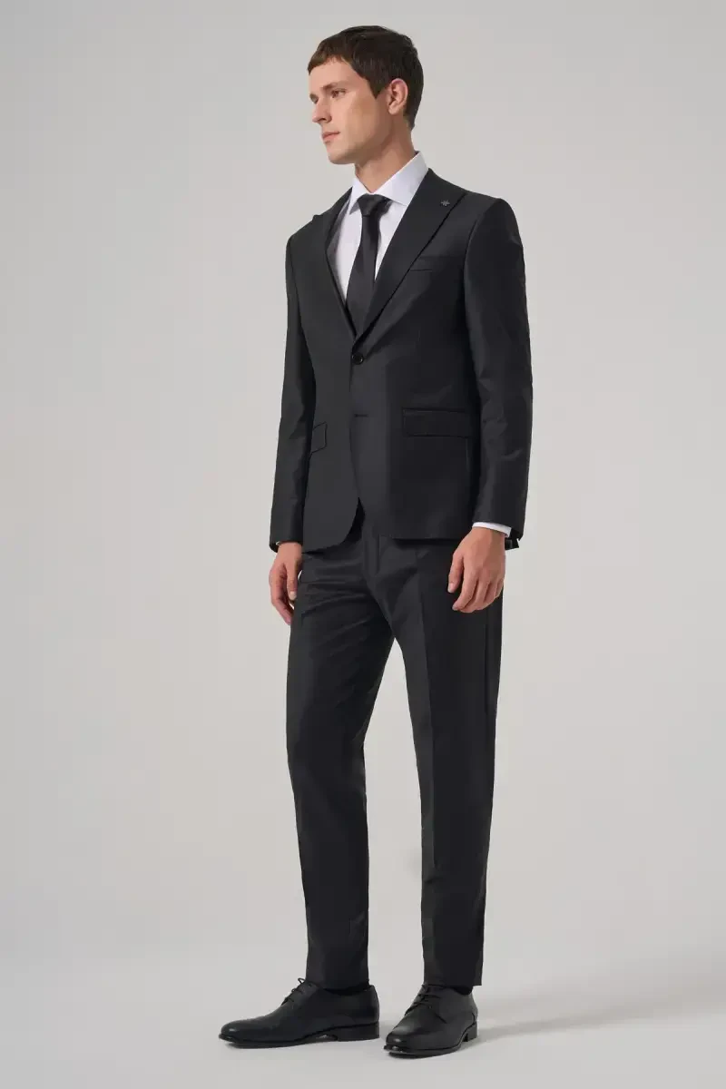 Kostyum, erkaklar kostyumi, qora kostyum, jun kostyum, slim fit kostyum, trend kostyum, uchli yoqa, modazone, erkaklar kiyimi, moda