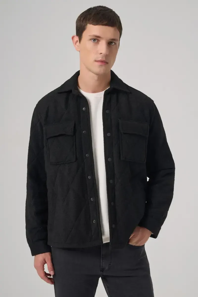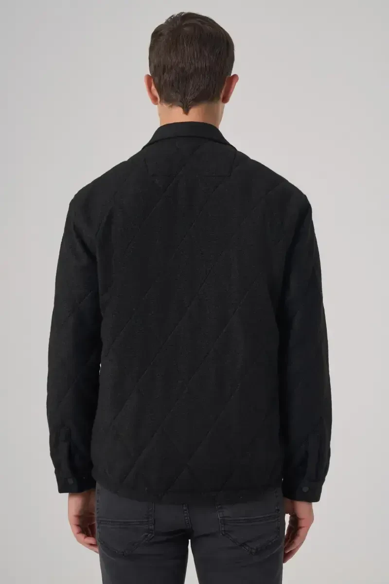 Erkak Qora Jun Berber Yoqali Palto | Dynamic Fit | Modazone