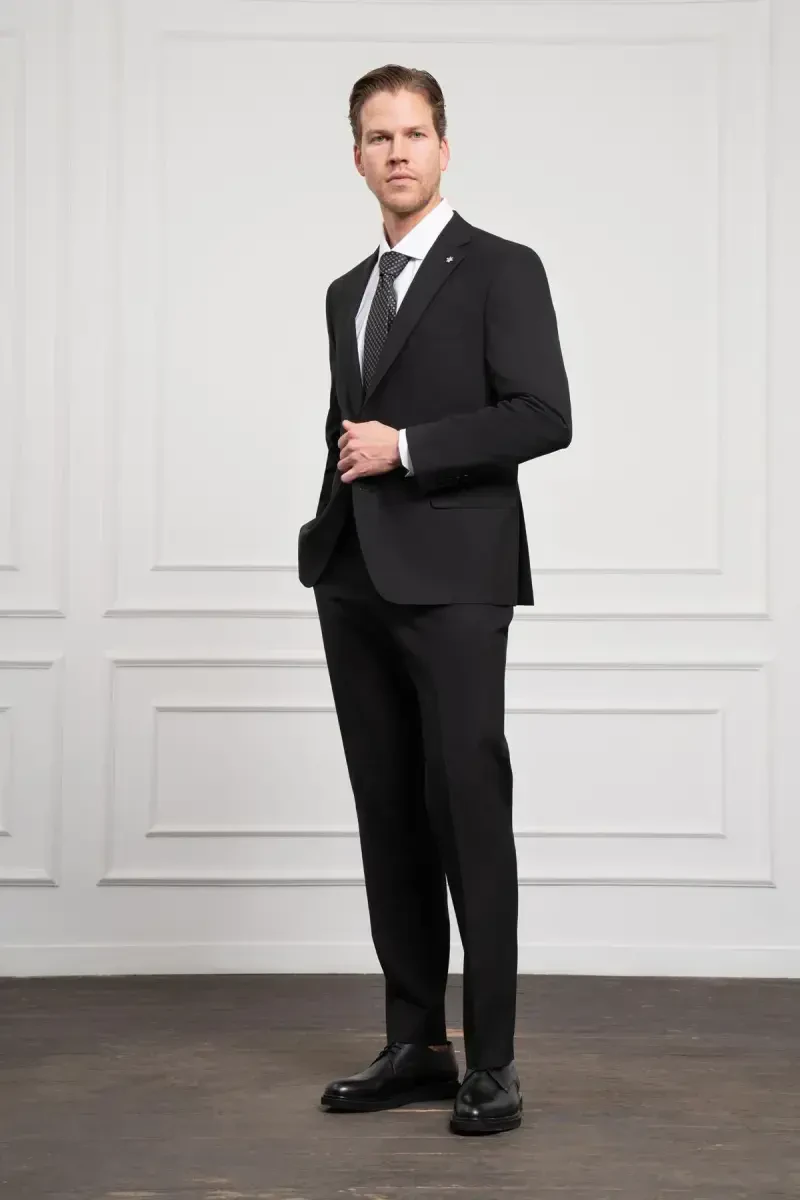 Erkaklar kostyumi, qora kostyum, jun kostyum, platinyum kostyum, 4 tomchili kostyum, dinamik mos kostyum, mono yoqali kostyum, zamonaviy kostyum, moda kostyumi, erkaklar kiyimi