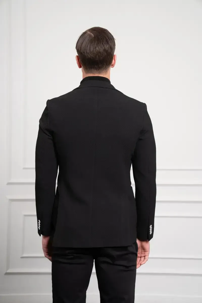 ModaZon Qora Slim Fit Erkaklar Kurtkasi | To'qilgan naqshli Mono Yoqali Chiroyli Kurtka