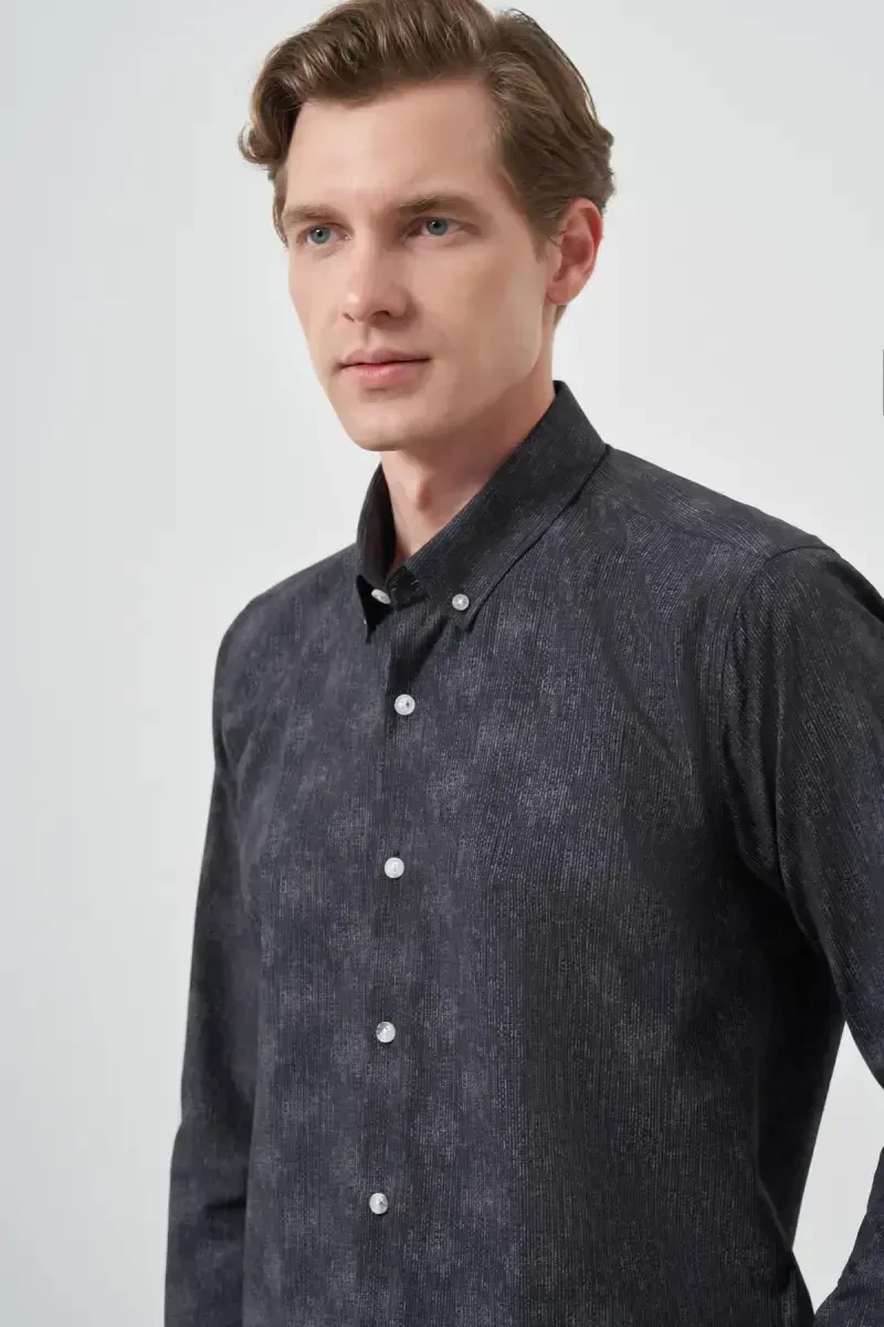 Erkak ko'ylak, slim fit ko'ylak, qora ko'ylak, tugmali yoqa, Modazone, paxtali ko'ylak, zamonaviy ko'ylak, qulay ko'ylak, uzun yengli ko'ylak, erkaklar kiyimi
