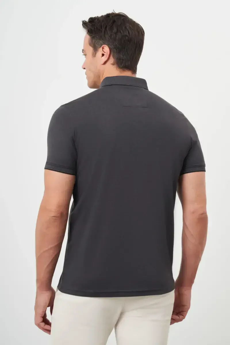 ModaZon Erkak Qora Merserizatsiya Tugmachali Yoqali Dynamic Fit T-Shirt