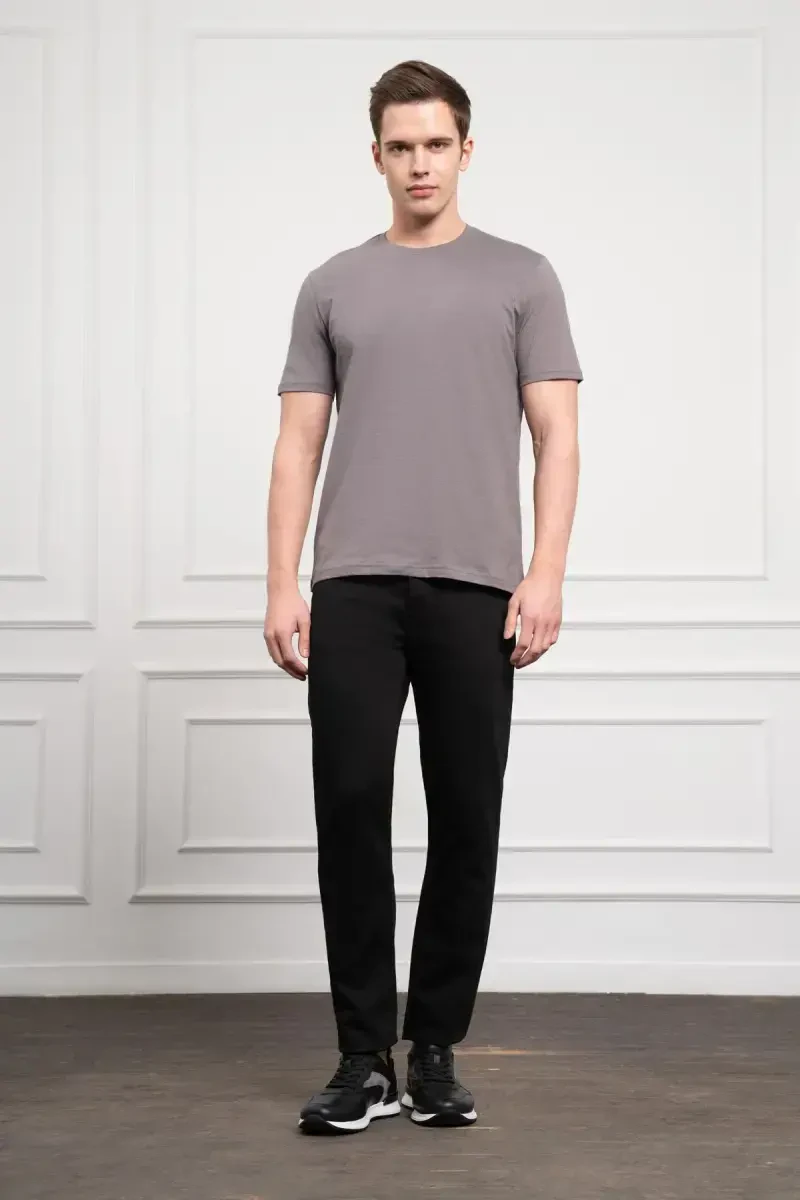 Erkak Antratsit Bisiklet Yoqali Paxta T-Shirt | ModaZon Dynamic Fit