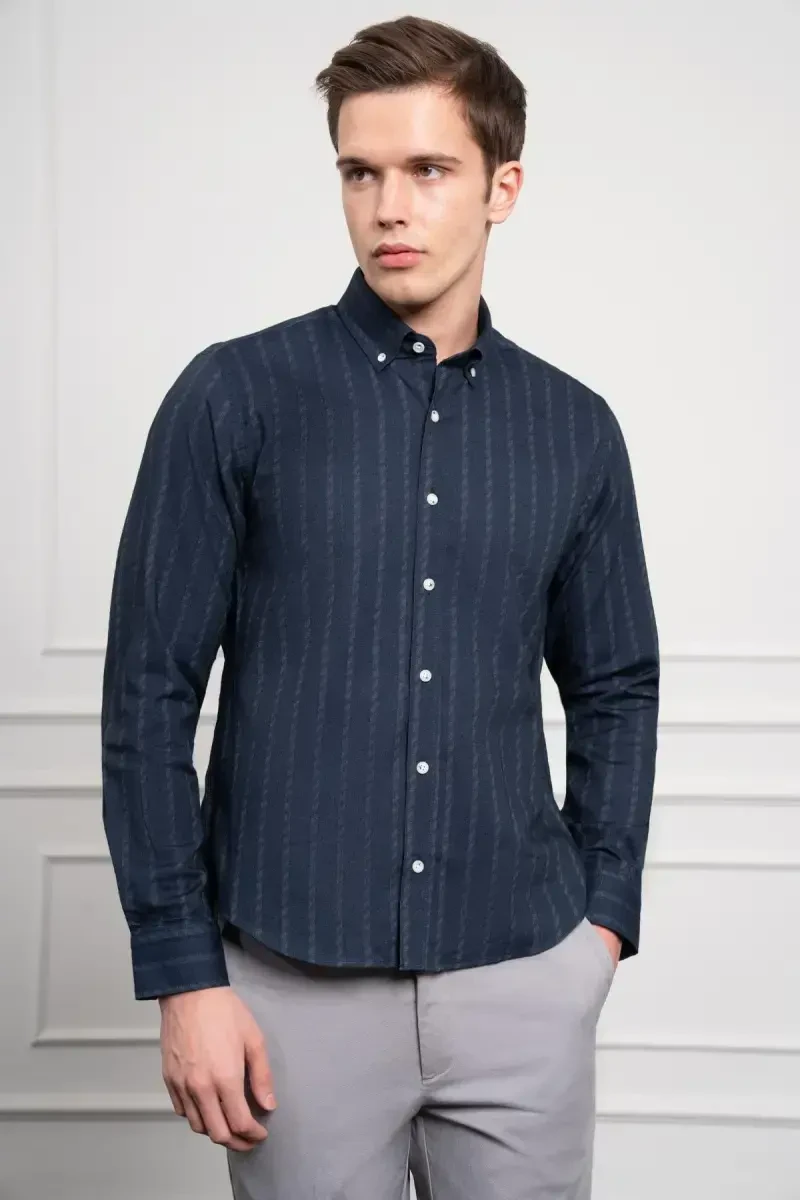 Lacivert Qishki Erkak Ko'ylak | Dynamic Fit Tugmali Yoqa ModaZon